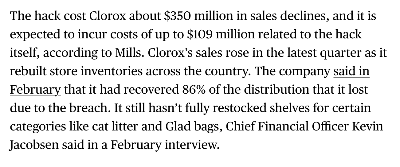 It all depends on the financial standing of your company. For every UnitedHealth, there are companies like Blackbaud and Clorox who have had material cybersecurity impacts as noted in their 10-K/10-Q’s.
